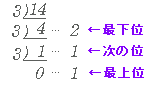 | 参考 (a×32+b×3+c) 3 + ↑ 3で割った余り d ↑(3で割った商) 以上の方法をまとめると,次の図になります. ![]() |
