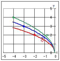 ⇒で示した点は,x=−1 , y=−=−2を表す.