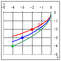 ( a>0,定義域:x≦0,値域:y≦0 ) のグラフは y= のグラフを原点に関して対称に移動したもので図4のようになる.