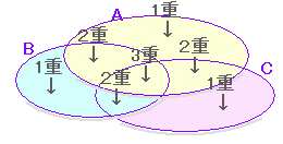 ※ベン,オイラーは各々集合を研究した数学者の人名![]() |