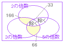 ○ 15 の倍数は,1000÷15=66 … 10 により 66 個 ○ 30 の倍数は,1000÷30=33 … 10 により 33 個 166+66 - 2×33=166 |