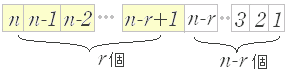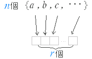 異なる n 個のものから,異なる r 個を取ってできる順列の総数は