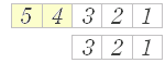 ○ 順列の公式を階乗記号で表わすには![]() 階乗記号は1までの整数を全部連ねたものとして定義されている. 右図のように「5両連結の列車」の前に「3両連結の列車」を置くと,前の2両(5と4)が見える. 5P2=5·4= nから順に小さくなるr個の整数の積では ![]()