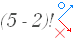 エヌ階乗,エヌの階乗,エヌ・ファクトリアルなど [実際にある間違い] (5−2)! のような計算は,3! に直して行うことはできるが,5!−2! にはならない.(この括弧ははずせないので注意) 3!=6 であるが5!−2!=120−2=118 (全然違う値になる) |