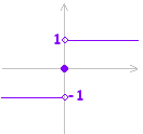 右極限値は f(x) = = 1 左極限値は f(x) = = −1 これらが一致しないので,x → 0 のとき極限値は存在せず,不連続です。
