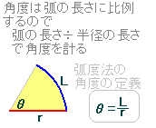 度数法(60分法) ・・・ 単位は度 弧度法 ・・・単位はラジアン(省略するのが普通) |