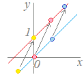直線y=xのグラフをx軸の正の向きに1y軸の正の向きに2だけ平行移動してできるグラフの方程式は