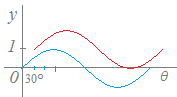 θの値よりも、θ30°の値は30°だけ「遅れる」。