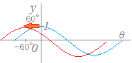 同様に、θ=60°のとき、θ+30°=90°だから、