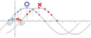 これをグラフで表すと、右に30°だけ移動させたものになる。