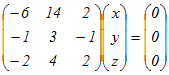 (*4)+(*5) x=(2y) これらを(*1)に代入すると成立するから(*1)は不要 ⇔ x=(2y), z=0 → x=2t, y=t, z=0 ⇔ (x, y, z)=t(2, 1, 0)