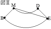 (2) 図Vは立体Qを線分MBで切ったときの側面の展開図で,点D, Eは,展開図を組み立てたときに,点M, Bとそれぞれ重なる点である。線分MEの長さを求めなさい。