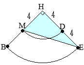(2) 右図において,△MEHは∠H=90°の直角三角形だから\(\displaystyle {\rm ME^2}=4^2+8^2=80\) \(\displaystyle{\rm ME}=\sqrt{80}=4\sqrt{5}\)(cm)・・・(答) |