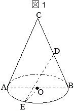 [9]右の図1は,線分ABを直径とする円Oを底面とし,線分ACを母線とする円すいである。 また,点Dは線分BCの中点である。 さらに,点Eは円Oの周上の点である。 AB=8cm,AC=10cm,∠AOE=60°のとき,次の問いに答えなさい。ただし,円周率はπとする。 (ア) この円すいの表面積として正しいものを次の1〜6の中から1つ選び,その番号を答えなさい。 1. 24π cm2 2. 28π cm2 3. 40π cm2 4. 48π cm2 5. 56π cm2 6. 84π cm2 (イ) この円すいにおいて,2点D,E間の距離として正しいものを次の1〜6の中から1つ選び,その番号を答えなさい。 1. \(\sqrt{43}\) cm 2. 7 cm 3. \(5\sqrt{2}\) cm 4. \(\sqrt{57}\) cm 5. \(3\sqrt{7}\) cm 6. 8 cm