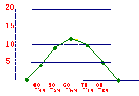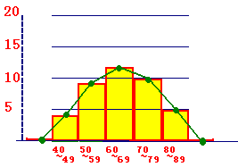ヒストグラムをさらに,次のような折れ線グラフ(これを