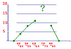 次の度数分布表を右のような度数分布多角形にするとき,70以上80未満の階級に対応する