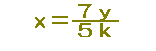 解説 元の式 両辺に7を掛ける 7y=5kx 右辺と左辺を入れ替える 5kx=7y 両辺を5kで割る |