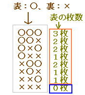 ■(少なくとも1つは表となる確率)=1−(全部裏となる確率)