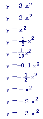 次の各点を通る2次関数を,右の欄から選びなさい.