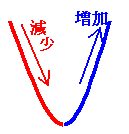 x<0で右下がりです.(x<0のとき,減少といいます)