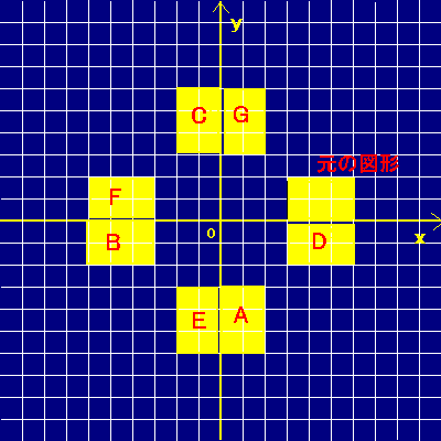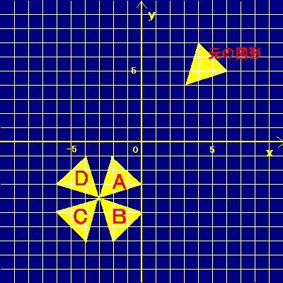 元の図形を原点のまわりに左回りに90゜回転すると,次のうちどの図形になりますか.