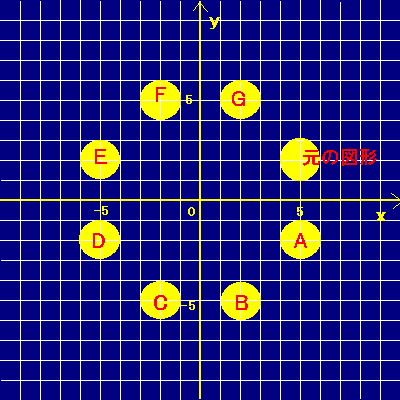 元の図形を原点に関して点対称移動すると,次のうちどの図形になりますか.