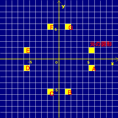 元の図形をy=xの直線に関して対称移動すると,次のうちどの図形になりますか.
