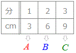 - 3分後に9(cm)までたまったことは、x=3 , y=9となる点(3 , 9)で表されます。(図の点C)