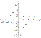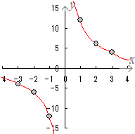 ≪問題1≫ 次の各表において上の段の数字を横(x)に、表の下の段の数字を縦(y)として点で表したグラフを選んでください。