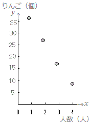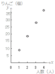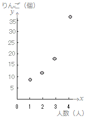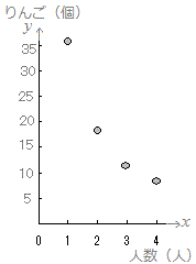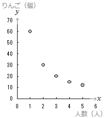 ○ 次の表2は60(個)のりんごを何人かで分けるときの人数(人)と1人がもらえるりんご(個)を表したものです。