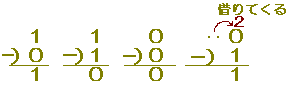 二進法で表わされた数の差は,各位の数について,次の規則によって計算することができます.