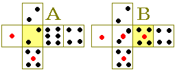 右のような展開図を組み立てた さいころ A,Bがある.Aは3の目を2の目に,Bは6の目を5の目に,それぞれ変えてある.