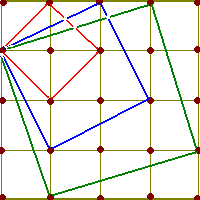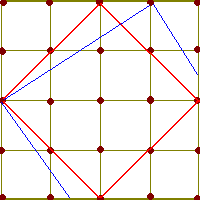 (2) 適当な4点を頂点とする正方形をつくるとき,何通りの面積の正方形をつくることができるか.(「京都府 平成11年度」問題の引用) |
