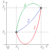 によって,すなわち最初の点の座標(x1, y1)と最後の点の座標(x2, y2)だけで決まるので,途中の経路がどうなっているのかに関係なく定まります. 右図3において,赤で示した経路1であっても,青で示した経路2であっても,緑で示した経路3であっても,変化の割合はすべて等しくなります.