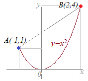になり,途中で減ってから増えているという経路は考慮しません.この変化の割合は点A(−1, 1)と点B(2, 4)を結んだ線分ABの変化の割合と全く同じものです.