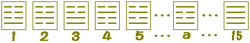 | 下の図は,十進法で書かれた数,1,2,3,4,5,...,a,...15を,二進法の考えをもとにして,それぞれあらわしたものである.aにあてはまる数を求めよ.
