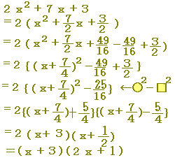 x2−14x+49積が49,和が−14となる2数は,−7と−7だから,(原式)=(x−7)(x−7)例4