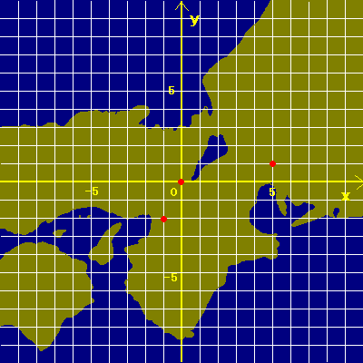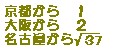 ≪問題≫ 次の地図は,近畿付近の縮尺図です.京都,大阪,名古屋から地震の震源地までの距離が次の値となるとき,震源地を示しなさい.(なお,震源地のx,y座標はいずれも整数とします.)