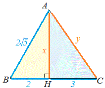さらに求めたAHの長さとCHの長さを使って青色の三角形について三平方の定理を使うと辺ACの長さを求めることができる. ![]()