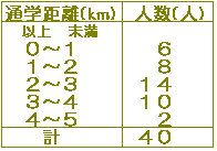 ■階級値は,それぞれの階級の中央です.例えば通学距離0〜1の階級については,通学距離0.5の生徒が6人いるとみなします.