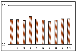 この頁の学習により,正答率は77.9%から87.5%へ変化し,ここで扱った項目に関して9.6%の成績アップが見込まれる. |