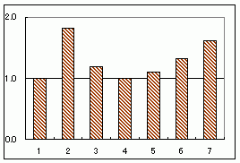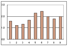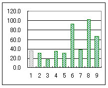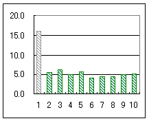 グラフ2は横軸が問題番号,縦軸は直前の操作以降その問題の採点までの所要時間(秒)を表わす.ただし,第1問は初めからの時間.