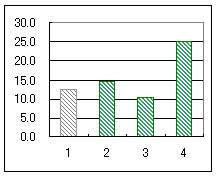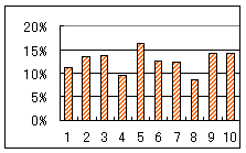 グラフ4は横軸が問題番号,縦軸がヘルプ利用率を表わす.ただし,第1問〜第4問にはヘルプは着いていない.
