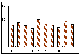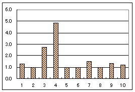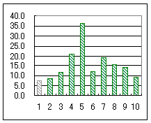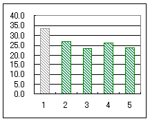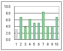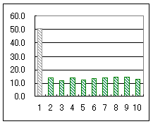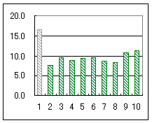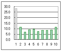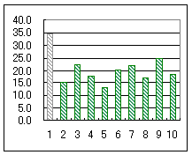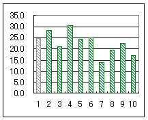 グラフ2は横軸が問題番号,縦軸は直前の操作以降その問題の採点までの経過時間(秒)を表わす.ただし,第1問は解説を読む時間を含む.