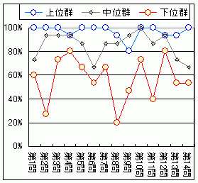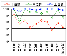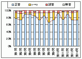 学習開始時において平均正答率は80%台で,この頁の問題は回答者にとって「非常にやさしい」問題になる.