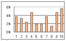 グラフ3は横軸が問題番号,縦軸は試行回数を表わす.(ただし,同一問題を16回以上試行した答案については16回と見なす.)