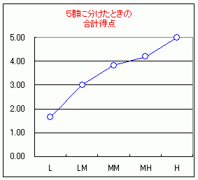 表1は各問題の得点と残りの問題の合計得点との相関係数で,第10問においてイレギュラーなことが起こっている可能性がある.これを上位群,中位群,下位群各33.3%のグラフにしたグラフ4で確かめると,第10問において下位群と上位群が等しく下位群と中位群の逆転が見られ,第10問は合計得点で表わされる学力を反映していないことが分かる.