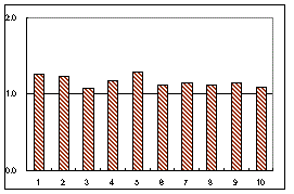 表1は異なる期間に分けて集計したときの正答者数で,この表を元に独立性に関するカイ2乗検定を行うとp=0.85となり,期間の違いによる有意差は認められず再現性がうかがえる.