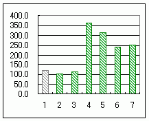 グラフ2は横軸が問題番号,縦軸は直前の操作以降その問題の採点までの経過時間(秒)を表わす.ただし,第1問は解説を読む時間を含む.