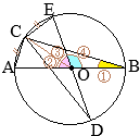 • \(\stackrel{\huge\frown}{\mathrm{BC}}:\stackrel{\huge\frown}{\mathrm{CE}}=4:5\)をどう使うか
